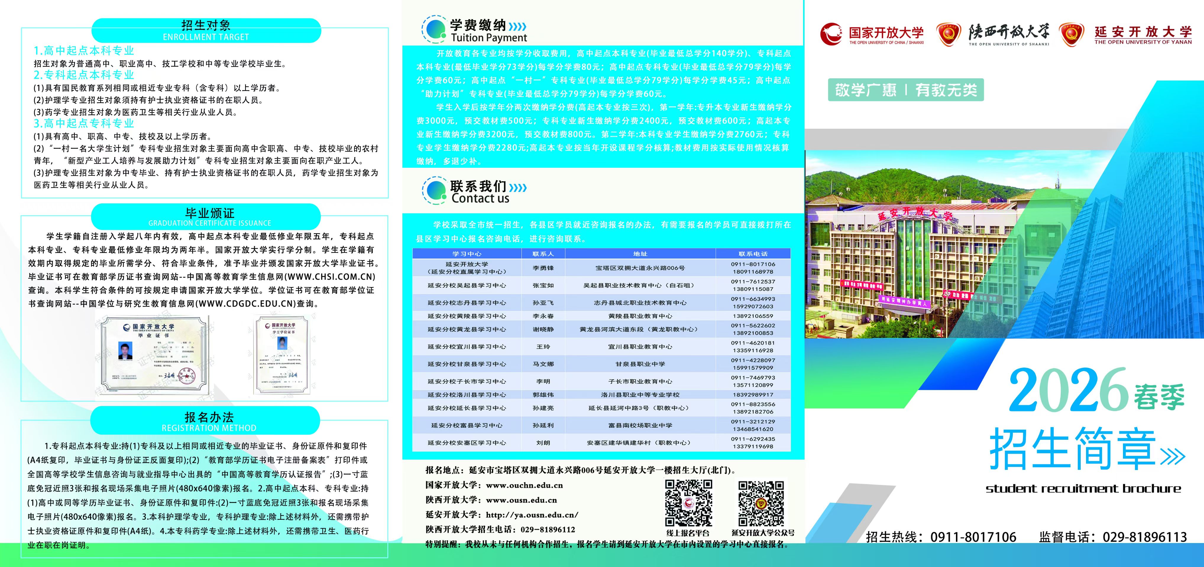 (延安電大)報名地點: 延安開放大學一樓招生處